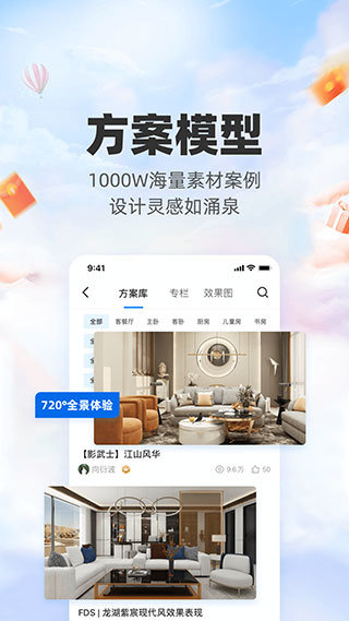三维家设计师最新版软件还汇集了1000w优质素材、1000+大咖教学以及200W设计师,能够帮助用户对接100W+业主,提供丰富的素材资料以及各种实际案列,用户随时随地可以学习视频,快速找到设计灵感!