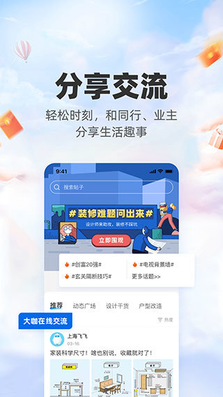 4、在社区页面可以看到其他用户的分享和改造效果图纸,还可以点赞、收藏评论哦!