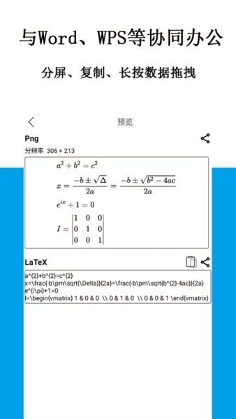 4、支持分享Latex、Png、Svg、MathML,协同Word、Markdown等文档编辑
