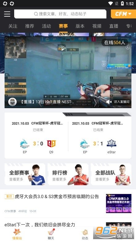 3、单场比赛详情页新增战队动态与选手数据,多方位了解选手