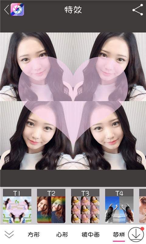 2、画中画美图:更有方形、心形、镜中画、简拼多种画中画特效,让您拥有独特美照,尽享美丽心情;
