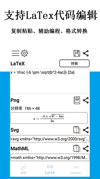 4、支持分享Latex、Png、Svg、MathML,协同Word、Markdown等文档编辑
