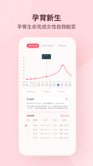自动绘制每个周期的指标曲线,快速定位峰值,准确判断排卵时间。