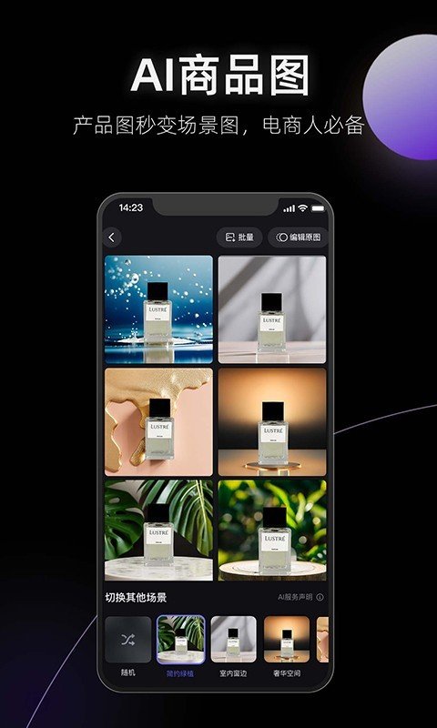 美图设计室为用户提供全面的智能作图工具,如海报商品图消除等,输入一句话或上传一张图即可帮你完成设计。更有丰富的商用海报模板,只要改字换图就能快捷生成手机宣传海报自媒体封面等设计物料。让设计更高效。