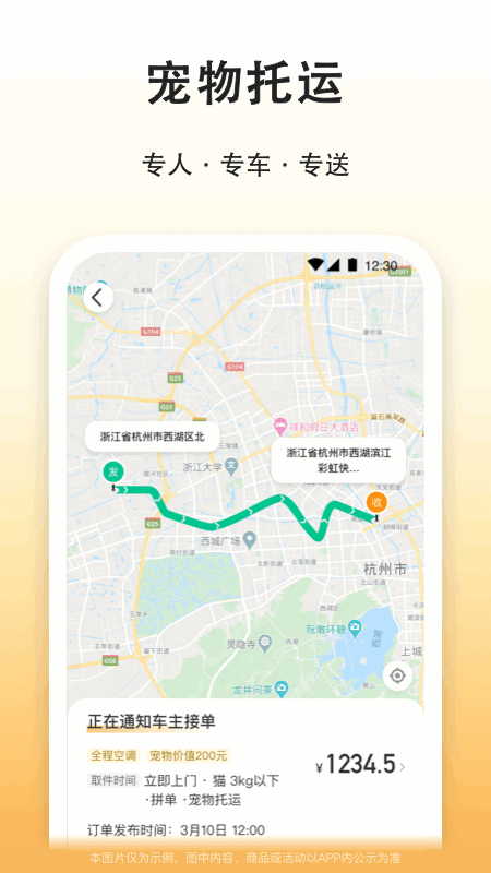 3、主要提供顺风车。长途急件。送宠物,帮忙办事,订单多,车主接单更快,行程更安全。