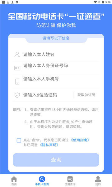 用户可以输入自己的身份证信息,就可以查询个人名下一共有多上找电话卡了,