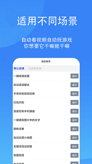触控精灵清新版是一款手机触摸功能软件,可以帮助你编制出不同的操控脚本,在这里你可以实现不同的自动化操作,而且交互更加的灵活,用户只需要人工操纵一遍,软件就可以记住步骤进行重复操作,欢迎下载体验。