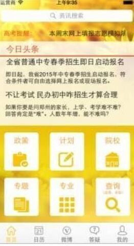 2、具有分数查询、录取查询、计划查询、热点问题、大学答疑、在线互动等功能