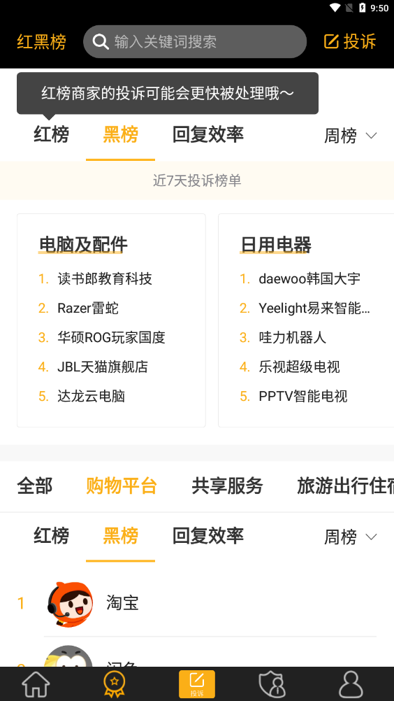 3、推出投诉榜单,实现商家信誉透明化:在投诉榜单中,企业在规定时间之内解决消费者投诉,将被录入黑猫投诉平台红榜,以表彰企业处理投诉的能力;如在要求时间内一直未解决消费者投诉,将被录入投诉平台黑榜。