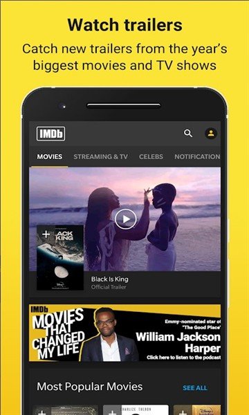 imdb手机版是一款非常专业的影评软件,在这里你可以查看您感兴趣的电影的评价,也可以在平台上发表自己的评价,是非常帮的影视工具,并且软件包含了非常丰富的影视资源,您感兴趣的在这里都可以找到,满足你的需求,感兴趣的小伙伴赶快下载吧。