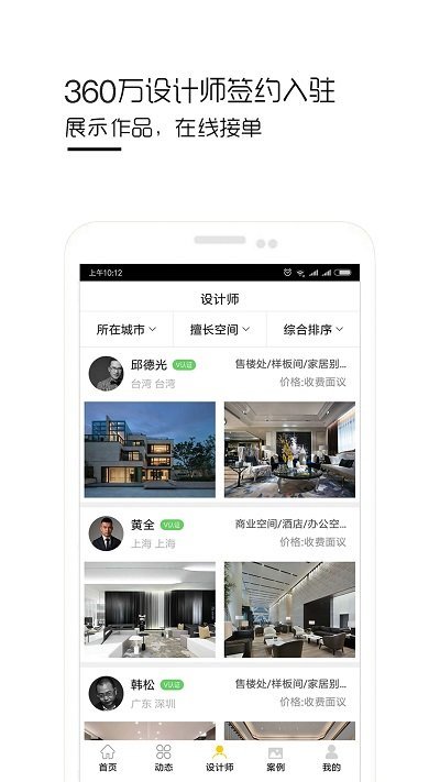 4、为设计师提供专属的个人空间,可以看到设计师的案例和动态等信息;