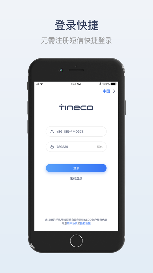 未注册的手机号验证后自动创建TINECO账户