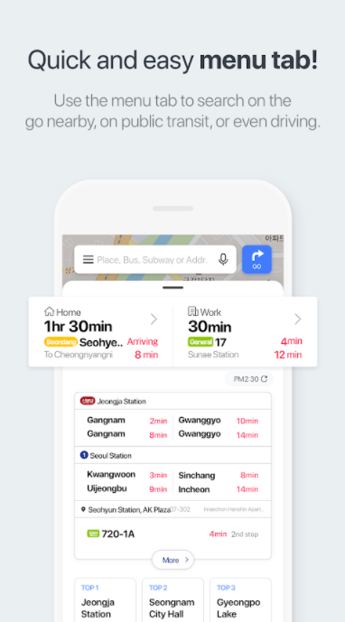 查看首尔/京畿道/釜山/大田/仁川的巴士到达时间