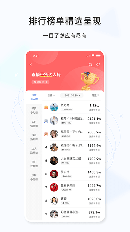 5、排行榜的选择和呈现一目了然。快速定位优质达人。