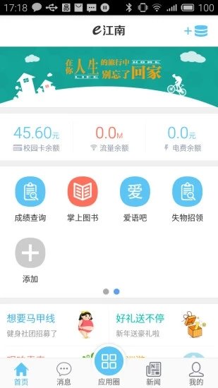 e江南是一款由江南大学官方推出的一款校园手机服务软件,功能非常的丰富,在这里可以随时线上查看自己的学习成绩,考试安排,生活指南,成绩,学分等,还有优质的校园交际圈,涵盖了生活学习中的所有功能,有需要的广大师生赶快下载吧。
