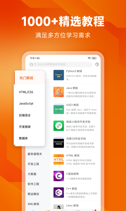 5、1000+编程教程库,想学什么学什么;