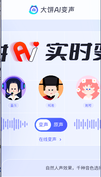 大饼ai变声官方版是一款创新的语音处理软件,可以帮助用户实现多样化的语音变声效果,操作起来非常简单,只需几步即可完成变声,可以选择不同的变声效果,让自己的声音听起来非常的有意思,无论是女生、大叔、搞怪通通应有尽有,赶快下载试试吧。