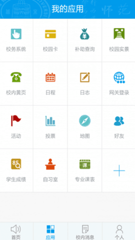 2、进入应用程序后,可以看到各种校园管理信息,可以查找校务系统,快速注册校园信息。
