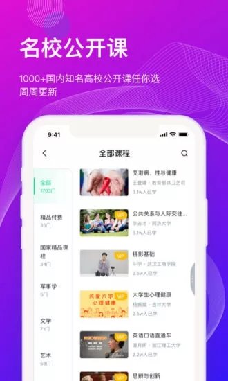 知到app是一款收录了众多名牌大学优质名师课程的软件,学生可以在这里进入清华北大等名校的课堂,听取教授免受学问,寻求真理。课程涵盖的范围十分广泛,军事,文学,数学等等。同时还能获取学分,大学生必备的软件。