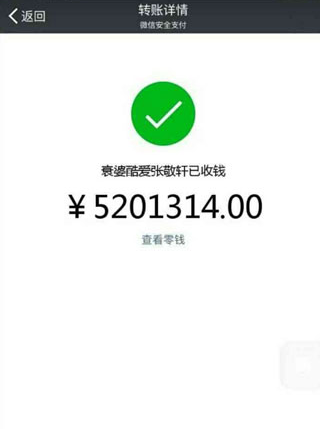 2、咱们先来瞧瞧怎样在微信红包上玩出新花样。马上就要到自己生日啦,心里清楚某人铁定不会有什么表示,可又特别想满足一下自己那点虚荣心。打开微信转账界面,乍一瞅这金额,是不是感觉玩得有点太夸张啦? 行吧,那就先输入对方名字,接着输入任意金额,就能轻松生成显示为5201314.00元的图片哦。接下来,就到了“装B”的关键步骤咯。把这个页面分享到朋友圈。哈哈,这下我也成功“装B”了一把!