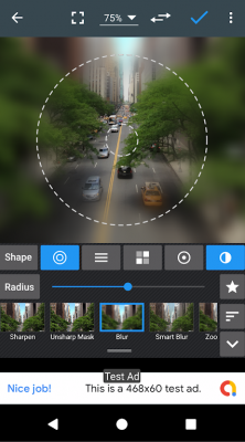 2、制作景深较浅的“对焦”功能,模仿单镜头反光光圈的模糊效果,自由调整形状和范围。