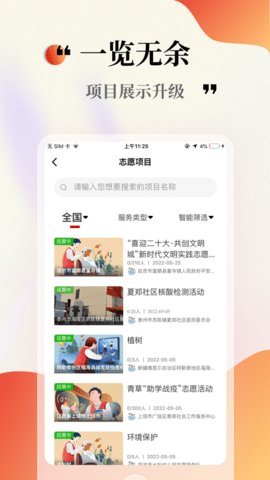 志愿云app是一款有爱心的志愿服务平台,这里的功能十分齐全,我们可以在这里自由选择志愿服务类型,并且该平台还会准备更多的活动哟,你要是感兴趣的话,欢迎随时前来这里下载感受一下吧!
