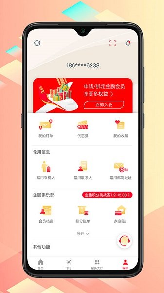 1、【机票预订】支持海南航空及海航旗下其它多家航司购票及改期升舱;