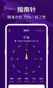 2、指南针:内置指南针功能,可快速获取您所在位置的方向、经纬度信息