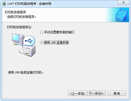 2、提示插入USB线的时候,将打印机和电脑通过usb线进行连接;
