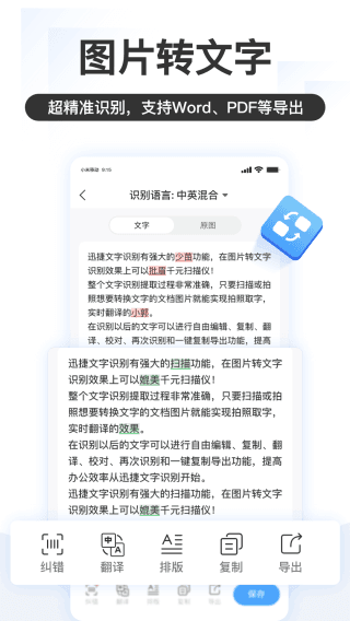 2、识别后的文字可同时与原图预览,校对之后更放心。