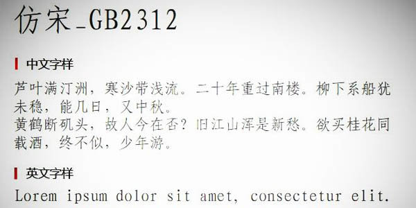 仿宋GB2312字体官方版是一款我们经常使用到的文字,这里的字体非常好看,是电脑中必备的字体之一,而且适用于印刷以及排版内容哦,你要是感兴趣的话,欢迎随时前来这里下载感受一下吧!