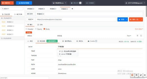 2、支持批处理接口测试,支持循环运行和沙箱环境接口测试。