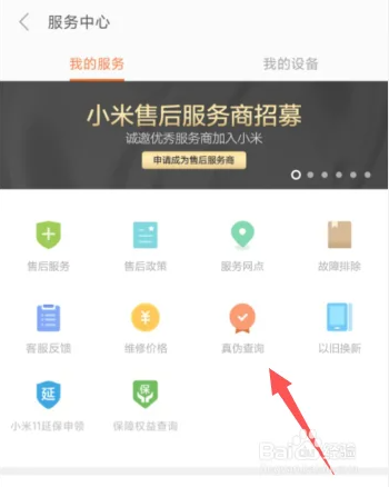 进入服务中心页面,点击【真伪查询】。(如图所示)