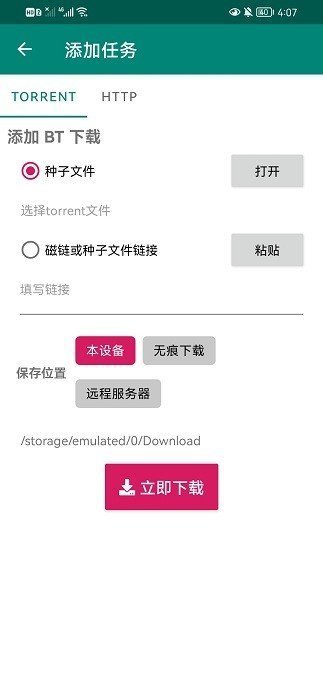2、打开种子文件或者在下方填入磁力链接