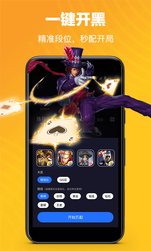 精准段位一键匹配,帮你找到靠谱队友秒开游戏。