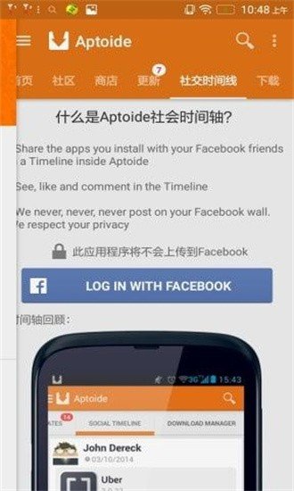 5、通过aptoide的独特应用时间轴查看推荐的应用和商店;