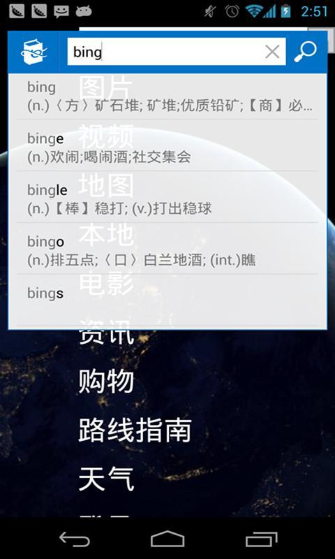 微软必应词典是款非常好用的手机词典工具,这里含有大量的英文词典数据库,并且还能为我们提供其他的功能,让用户们在这里查询起来十分的便利,你要是有需求且想要提升自己的话,欢迎随时前来这里学习啊!