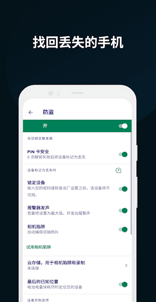 ■ 相机陷阱:在您的手机失窃时,秘密拍摄窃贼的照片和音频。