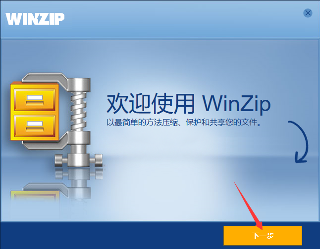 1、在本站下载WinZip安装程序,完成后双击“winzip-all24.exe”程序进入欢迎安装界面,点击下一步继续