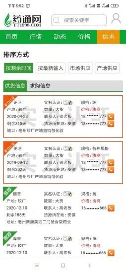 上面会有供应求购的各种信息,方便我们买到中草药,也方便我们卖出中草药。