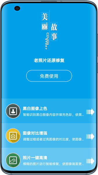 照片修复功能:智能识别及处理黑白照片,调整图像对比度以及进行智能修复,使老旧照片变得更加鲜活和清晰。
