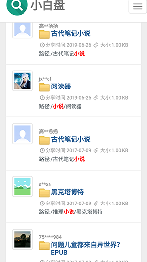 小白盘搜索引擎是一款非常好用的资源搜索软件,软件为用户提供了非常丰富的资源下载,无论你是喜欢看小说,电影,电视剧,还是动漫,在这里都应有尽有,全部可以一键轻松搜索到,为用户提供最优质的下载体验,感情的赶快下载试试吧。