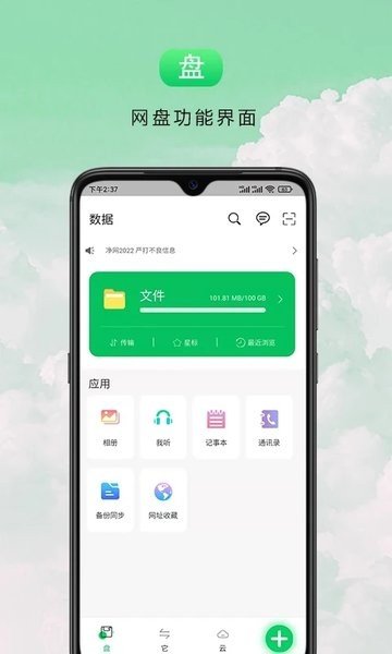 用户想对各种数据进行备份,通过释放手机空间,对网盘进行操作即可以达成。