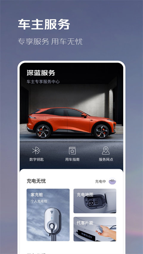 深蓝汽车app官方版为用户得到感受各种智能互联的功能。可以远程控制车辆。提供了智能安防功能,包括实时监控车辆周边环境、自动报警等,保障用户车辆的安全。定制化的服务,如定制路线、预约试驾等。喜欢的小伙伴,点击下载吧。