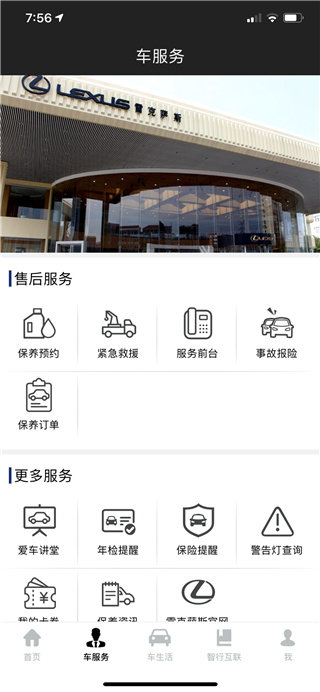2、车服务:服务预约、一键帮助、免费保养资讯、保养履历。