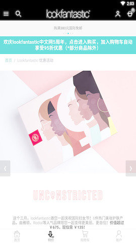 lookfantastic官网版是一款非常实惠的购物软件,这里汇集了许多国际大牌,折扣力度都非常大,在这里你可以买到价钱最优惠的大牌商品,最便宜的甚至一折起,并且软件汇集了多种时尚自媒体内容,你在这里可以看到最新的时尚趋势,轻松成为时尚达人,感兴趣的用户赶快下载吧。