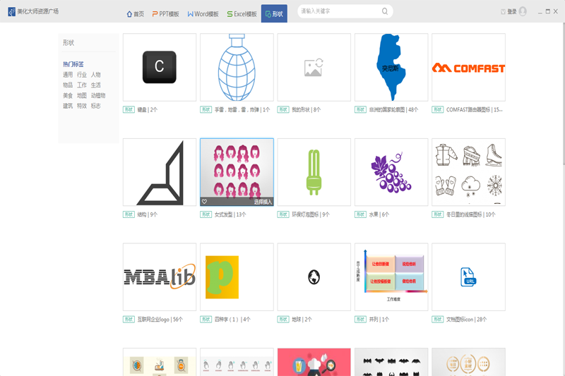 1、无论您有特殊的模板,漂亮的图标,创意书,实用的形状等等,都经过详细分类并不断更新,都可以满足。