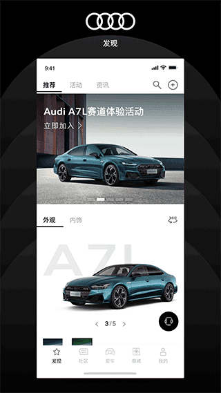 上汽奥迪官方版让用户,可以通过这款车辆,进行线上购车,感受许多有趣的全新我体验。官方在这里会不定时的推出各种福利活动,各种绝品配件,非常好用。还能实现车机互联,远程控车车辆,得到一把电子钥匙,点击下载感受吧。