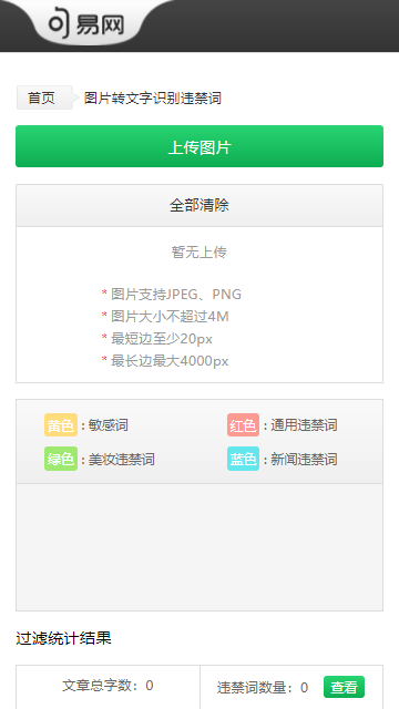 1.敏感词汇过滤:句易网文字过滤识别内置了大量违禁词和敏感词库,对文本内容进行智能判断和分析,快速准确地发现并屏蔽不良信息。