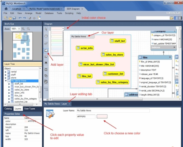 * 使用MySQL Workbench的Data Modeling的open existing EER model来打开数据库实例sakila中的sakila.mwb文件,如下图: